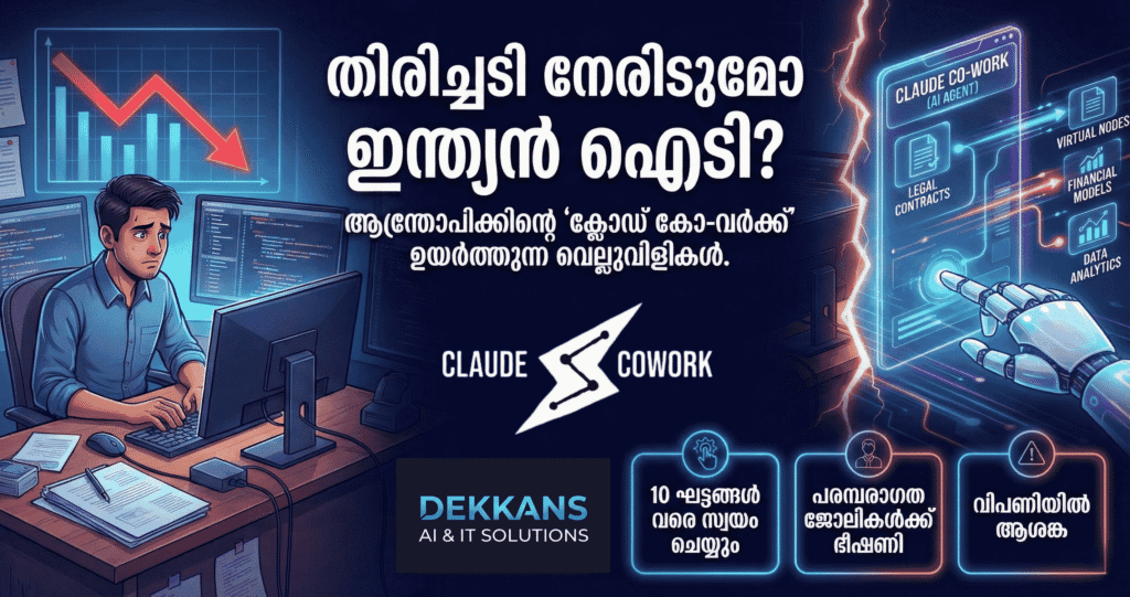 ആഗോള ഐടി ഭീമൻമാരെയും നിക്ഷേപകരെയും ഒരേപോലെ ചിന്തിപ്പിച്ചു കൊണ്ട് ആന്ത്രോപിക്കിന്റെ (Anthropic) പുതിയ AI പ്ലാറ്റ്‌ഫോമായ ‘ക്ലോഡ് കോ-വർക്ക്’ (Claude Co-work) രംഗത്തെത്തിയിരിക്കുകയാണ്. ഇന്ത്യൻ ഐടി കമ്പനികൾ